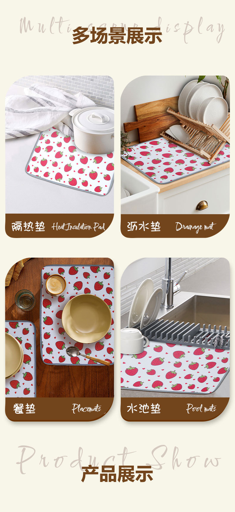 Cartoon Strawberry Kitchen Drain Mat Cute Wind Household Toilet Absorbent Mat Table Mat Western Food Table Bowl Coaster