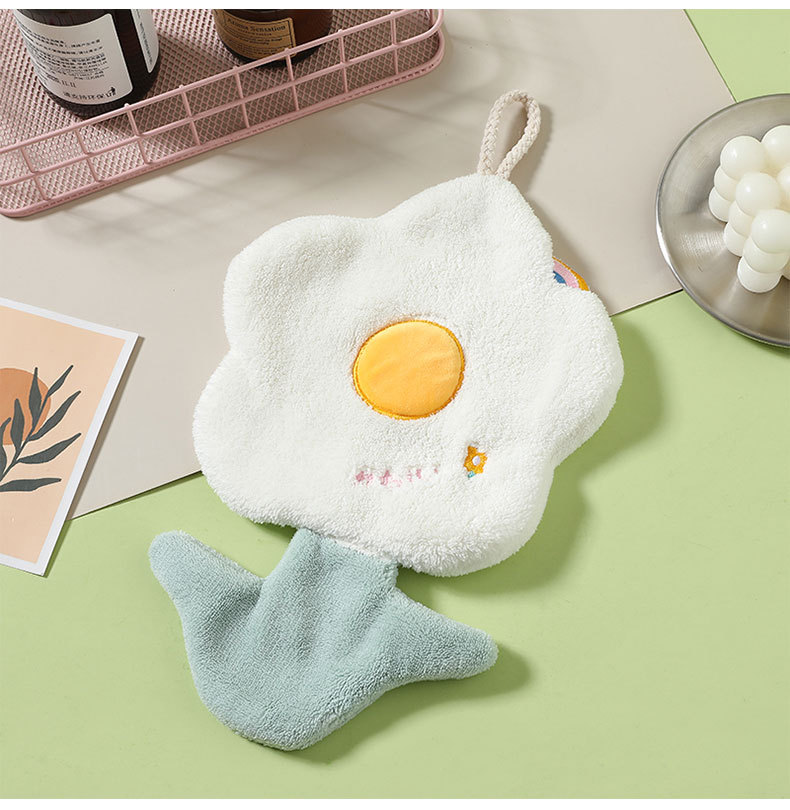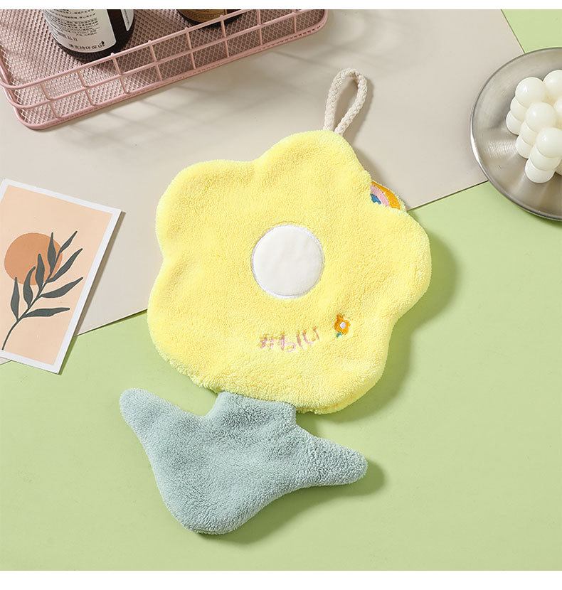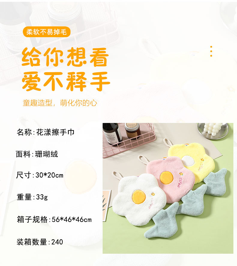 Coral Velvet Hanging Lovely Flower Handkerchief Double Thick Absorbent Children's Hand Towel With Hand Towel